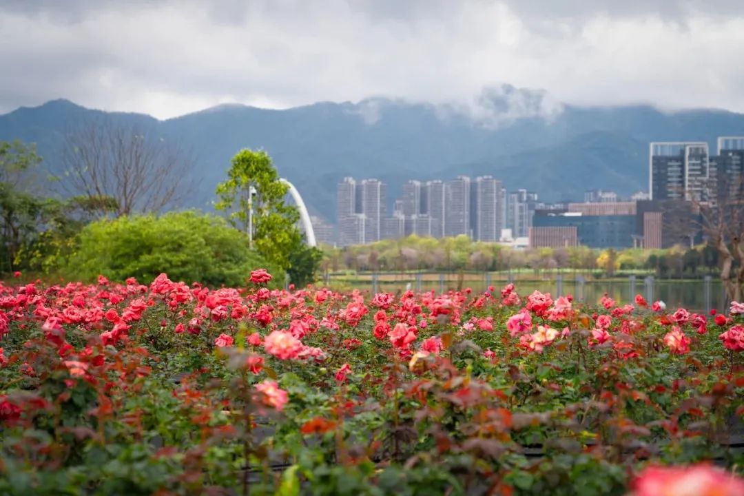 硯陽(yáng)湖月季島迎來(lái)盛放高潮,上萬(wàn)株月季織就五彩錦緞,細(xì)雨輕撫花瓣,露珠點(diǎn)綴其間,市民游客穿行花徑,衣袂染香,恍若步入《牡丹亭》的古典夢(mèng)境。