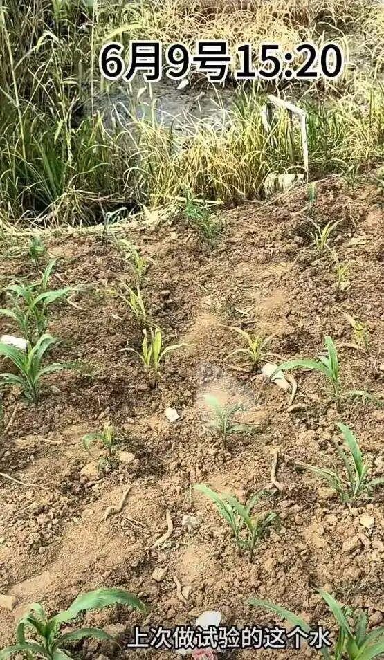 “漁獵齊哥”在6月9日發(fā)布視頻表示,7日中午,為了驗證河溝中的水有沒有問題,他在沫河口鎮(zhèn)一小塊玉米地做了實驗,分別用疑似被污染的水以及干凈水分別澆灌幾棵玉米苗,想過幾天再對比看看結果。9日下午,當他再次回到這塊玉米地時發(fā)現(xiàn),用疑似被污染的水澆過的玉米苗已經枯黃。