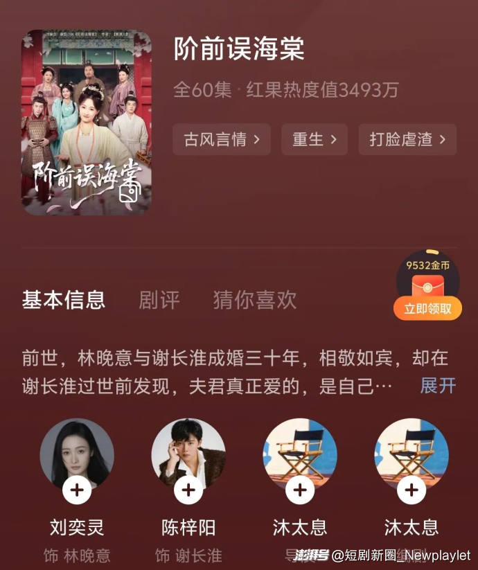 “古言”方面,《階前誤海棠》用精致的古風(fēng)敘事打動了很多喜歡古裝劇的用戶,證明了優(yōu)質(zhì)內(nèi)容在不同題材里都能找到自己的受眾。