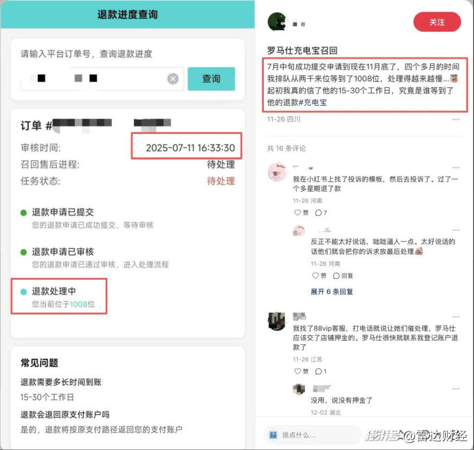 而羅馬仕退款進(jìn)度緩慢的問題,也引發(fā)消費(fèi)者不滿。據(jù)南方都市報(bào)7月報(bào)道,有網(wǎng)友曬出的退款進(jìn)度顯示,其排隊(duì)位置在17萬之外,預(yù)計(jì)需15-30個(gè)工作日才能到賬。