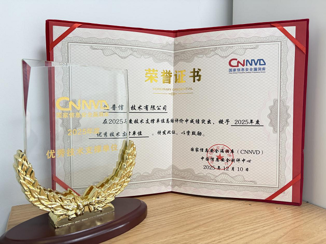 此次榮譽的獲得,是國家信息安全漏洞庫對道普信息綜合實力的權(quán)威認證,既肯定了公司在漏洞挖掘、分析、處置全流程中的核心技術(shù)能力,也認可了其完善的信息安全管理體系及專業(yè)服務(wù)水平。