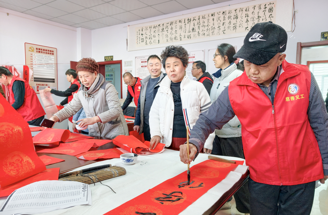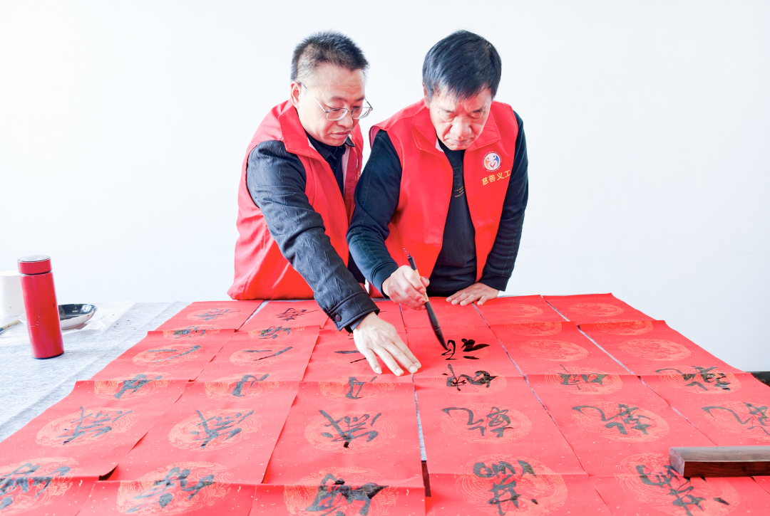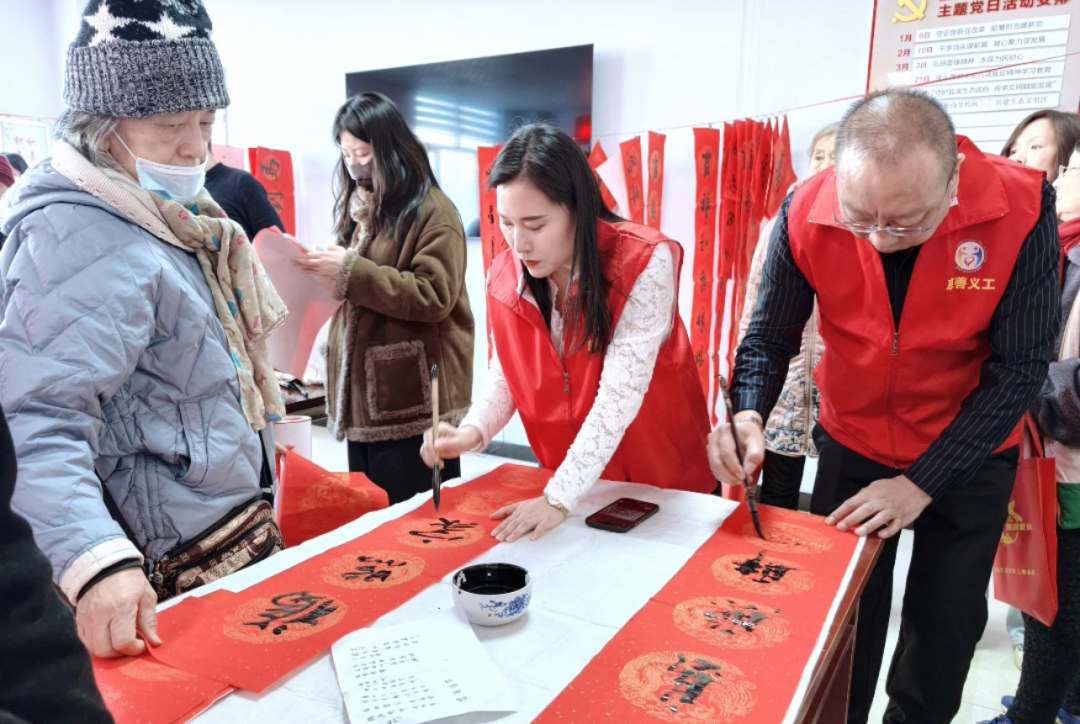 2月2日下午,運城市農(nóng)民書畫研究會的幾位書畫老師,在運城市中心城區(qū)中銀街社區(qū),參加由市、區(qū)民政局、運城市慈善義工聯(lián)合會、中銀街社區(qū)聯(lián)合舉辦的“墨香迎新春,春聯(lián)送富來”主題活動。