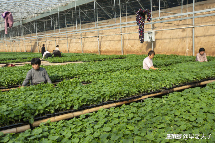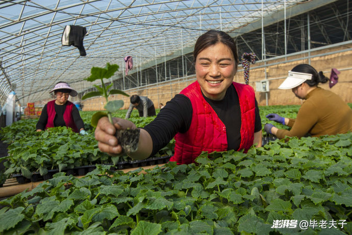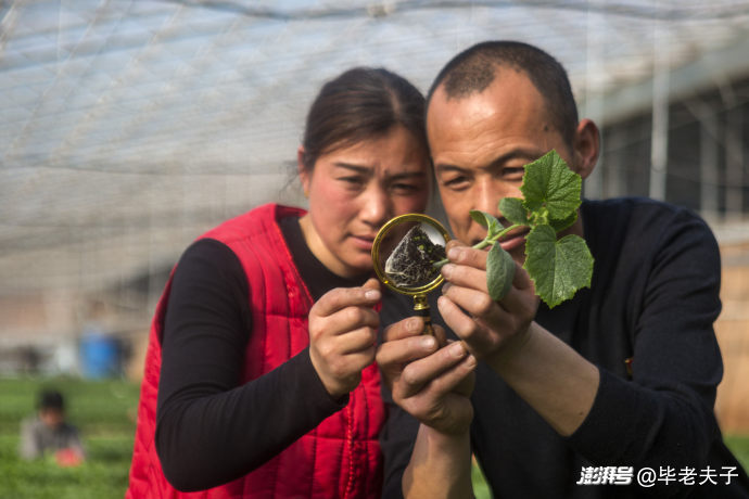 85后返鄉(xiāng)農(nóng)民王書亮與李艷偉從種植一棚西紅柿至今發(fā)展成為樂(lè)農(nóng)蔬菜種植專業(yè)合作社,擁有10棟智能溫室育苗大棚、20棟蔬菜種植大棚,已經(jīng)走過(guò)了10個(gè)年頭。圖為這對(duì)“蔬菜伉儷” 正在仔細(xì)觀察“早春一號(hào)”黃瓜秧苗的根系發(fā)育情況。