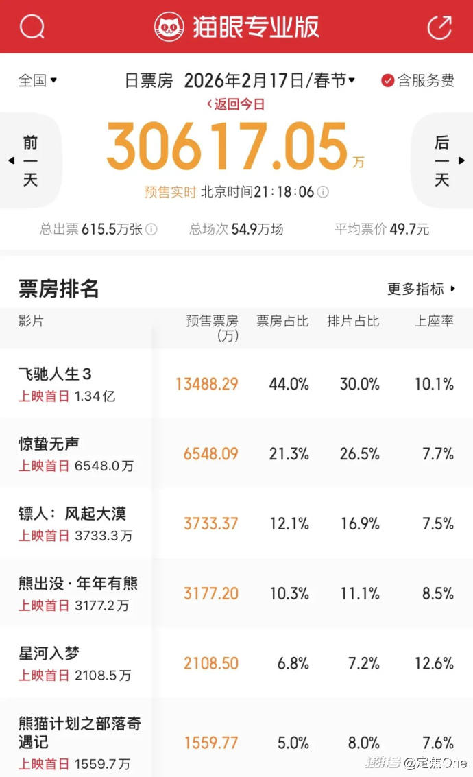 在不少業(yè)內(nèi)人士看來(lái),《飛馳人生3》領(lǐng)跑春節(jié)檔幾乎沒(méi)有懸念。