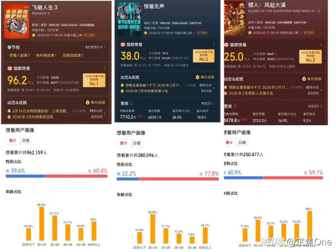 然而,在喜劇片占據(jù)絕對(duì)優(yōu)勢(shì)的春節(jié)檔,這一類(lèi)型的破圈能力尚待驗(yàn)證。截至目前,該片想看人數(shù)僅為37.7萬(wàn),20-24歲同樣是最大受眾人群,占比達(dá)32.8%。類(lèi)型的新意固然值得肯定,但能否轉(zhuǎn)化為足夠的票房,仍是《驚蟄無(wú)聲》面臨的最大變數(shù)。