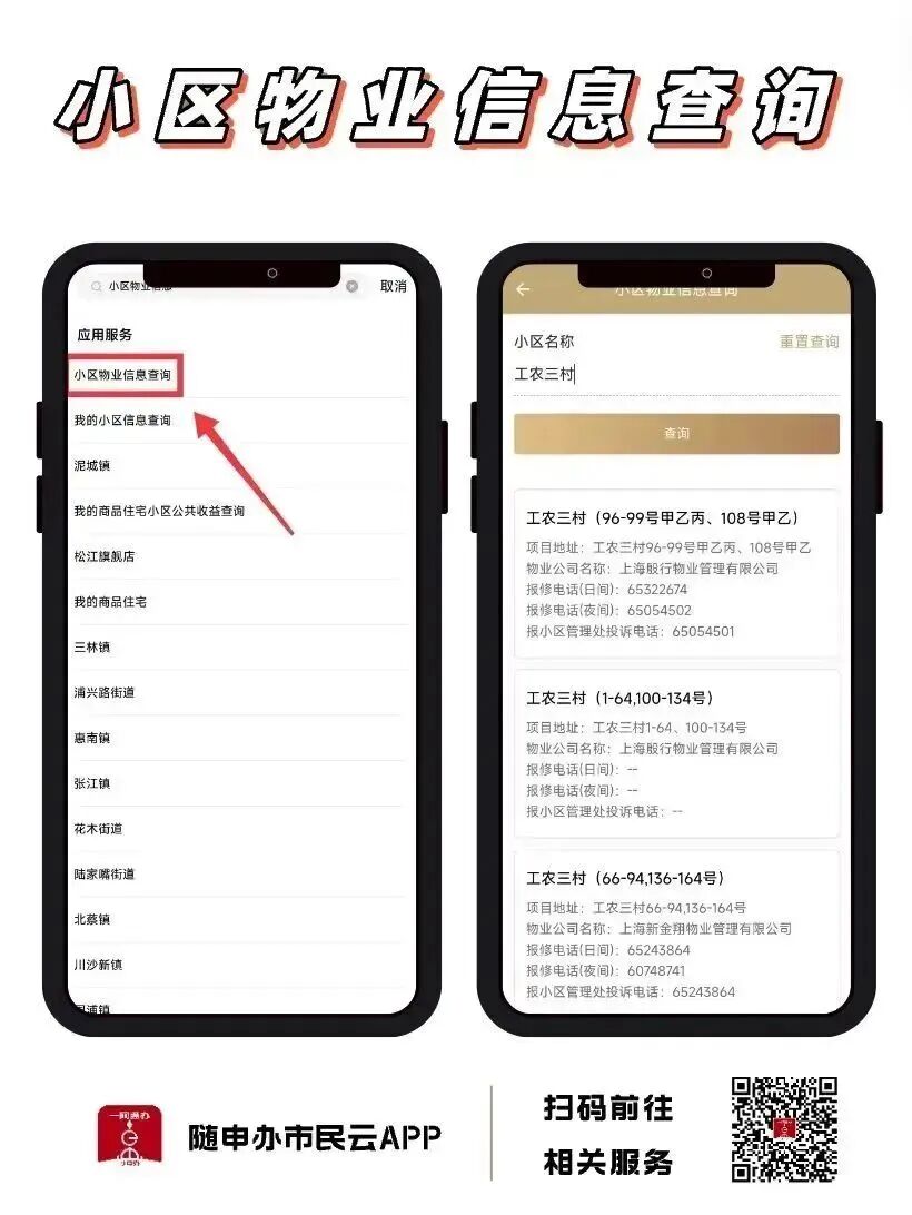 平時(shí)生活中,如果您散步發(fā)現(xiàn)小區(qū)公共區(qū)域夜燈好像壞了一個(gè),怎么找到小區(qū)物業(yè)快速報(bào)修呢?上“隨申辦市民云”APP【小區(qū)物業(yè)信息查詢】,可在線查詢小區(qū)物業(yè)公司信息,找到小區(qū)對(duì)應(yīng)的物業(yè)公司。