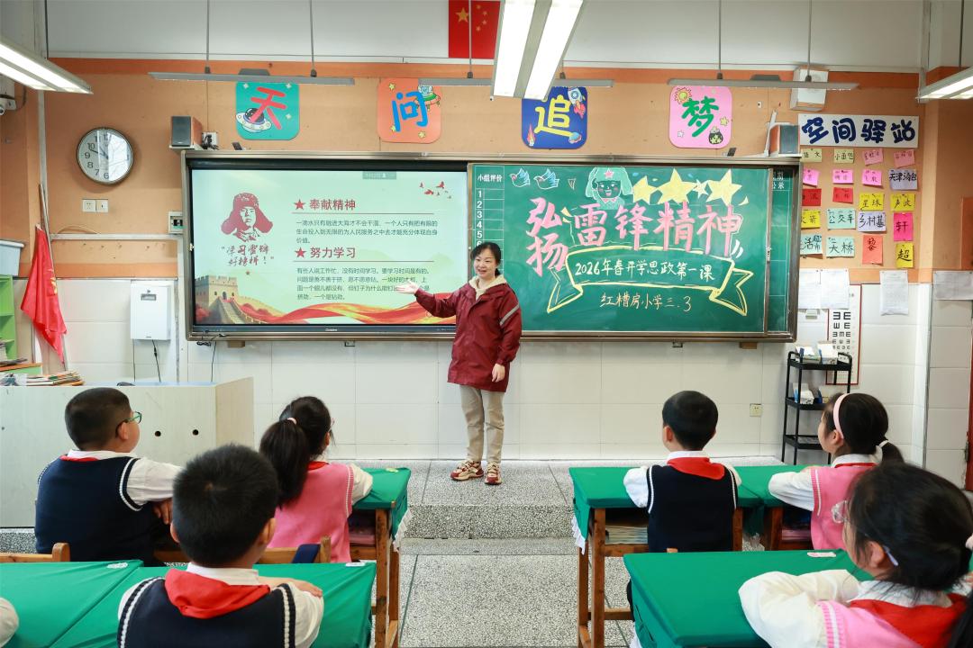 開(kāi)學(xué)當(dāng)天清晨,紅糟房小學(xué)的孩子們帶著新春喜悅返校,主動(dòng)向在校門(mén)口迎接的老師問(wèn)好,清脆的問(wèn)候聲回蕩在校園。為幫助孩子們快速調(diào)整狀態(tài)、樹(shù)立明確目標(biāo),學(xué)校教師提前謀劃,打造了融合思政引領(lǐng)與心理關(guān)懷的特色開(kāi)學(xué)第一課,兼顧思想啟蒙與心靈疏導(dǎo),讓課程既“走心”又“入心”。