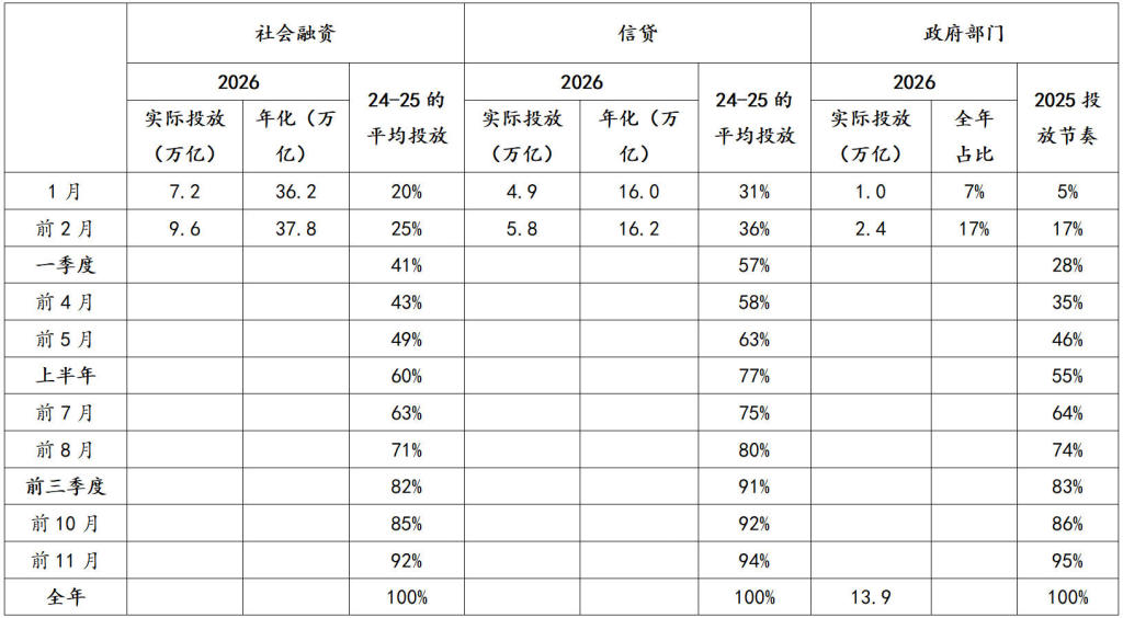 表1:社融與信貸投放及政府融資的節(jié)奏 數(shù)據(jù)來源:Wind