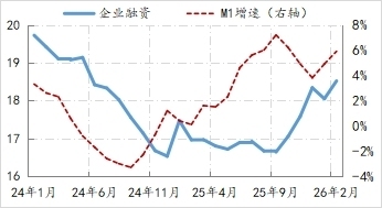 截至2月末,企業(yè)的融資速度已回升至18.5萬億/年(連續(xù)三個月高于18萬億水平),其中,信貸15.6萬億/年,債券2.4萬億/年,股票0.5萬億/年。在企業(yè)融資回暖推動下,企業(yè)的經(jīng)營性資金得以明顯改善,以企業(yè)活期存款為主的M1增速同步趨勢性回升。在PPI同比回升影響下,1月份企業(yè)實(shí)際信貸融資成本已降至5%以下(4.6%),鑒于2月份PPI同比較1月提高了0.5個百分點(diǎn),相應(yīng)企業(yè)實(shí)際信貸融資成本應(yīng)已降至4%左右的水平。
