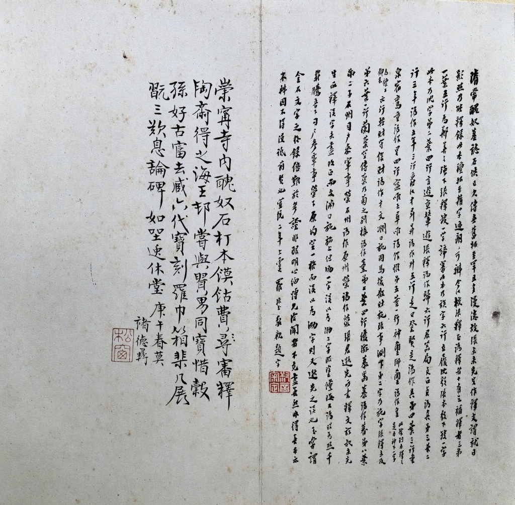 此本出江南故家,輾轉(zhuǎn)流入京師。余懸重直收之,取與《崔敬邕志》相配,亦自謂合之兩美矣?;颡q謂不如以配《張黑女》,夫《黑女》世無二本,豈易遽致者哉?即此,已聊足自?shī)识?/span>