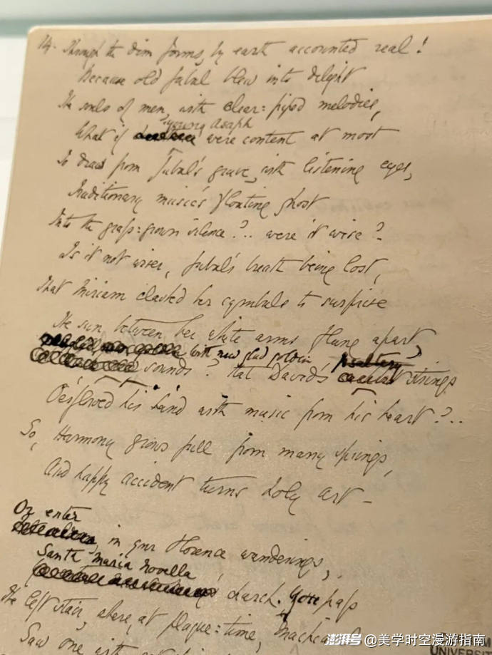 展覽中的手稿有好幾類,一類是從筆跡上就能看出,是用羽毛筆蘸著墨水與燭光書寫的;還有的是用鋼筆寫出流暢的字體;接著,有打字機(jī)打出整齊的字母,字里行間還有手寫修改的字跡;再然后,就有電子郵件了,你沒看沒錯,是打印到紙上展出的電子郵件……這些變化是英國文學(xué)500年里的書寫工具變化,不同形式的手稿像一條隱藏的時光之河,靜靜流過展廳。