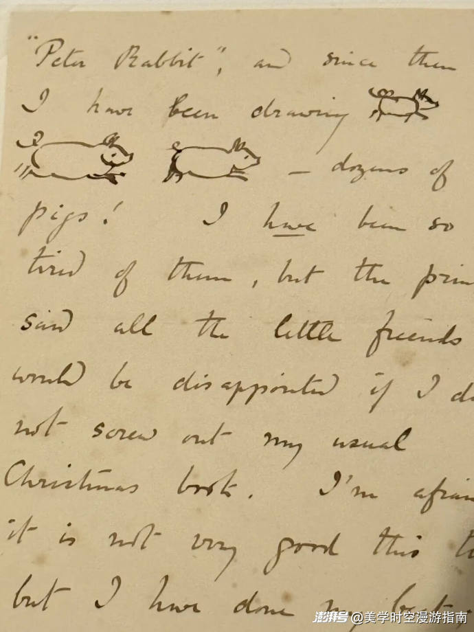 還有這次展覽中我最最喜歡、也最最可愛的手稿,就是畢翠克絲·波特女士的手寫信!她在信里畫小豬!!