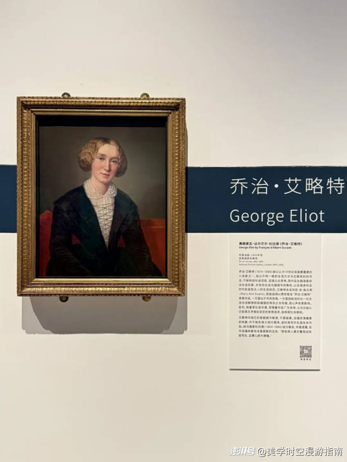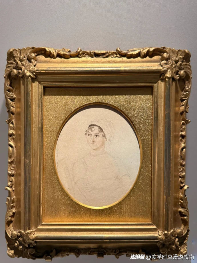 在展廳墻上的另一面,與莎士比亞相背的畫像,極為小幅的一張水粉,就是簡·奧斯汀。