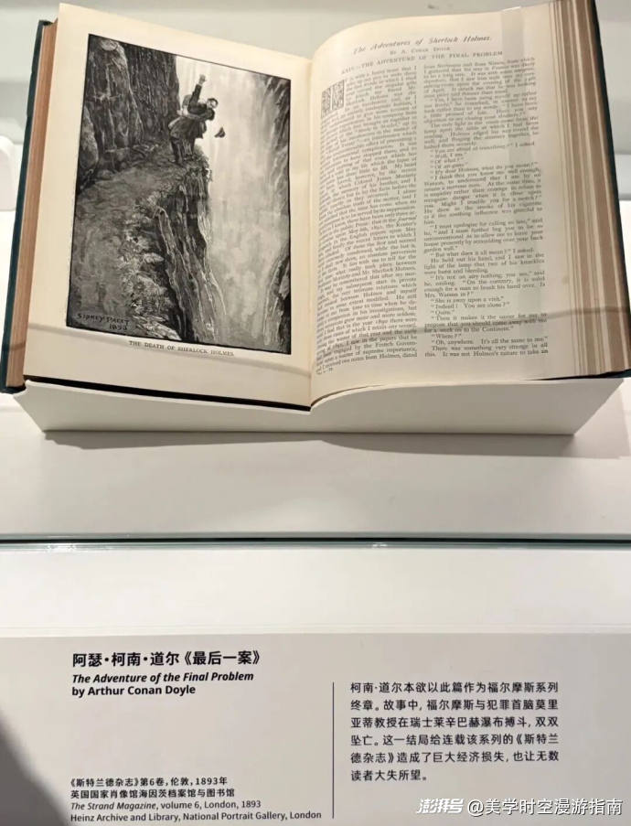 展覽的動線設(shè)計也像是文學(xué)從精英向大眾擴(kuò)散的脈絡(luò)。從米爾頓莊嚴(yán)的史詩,到柯南·道爾筆下的貝克街,再到J.K.羅琳構(gòu)建的魔法世界,這既是體裁的演變,更是社會心理重塑。我們看到了拜倫、雪萊、濟(jì)慈在浪漫主義中狂飆;勃朗特三姐妹與伍爾夫,訴說著女性在文學(xué)領(lǐng)地突圍的艱辛。還有更多被改編成影視劇的:柯南?道爾《福爾摩斯》、劉易斯?卡羅爾《愛麗絲夢游仙境》、羅爾德·達(dá)爾《了不起的狐貍爸爸》、托爾金《魔戒》、阿加莎?克里斯蒂《東方快車謀殺案》……