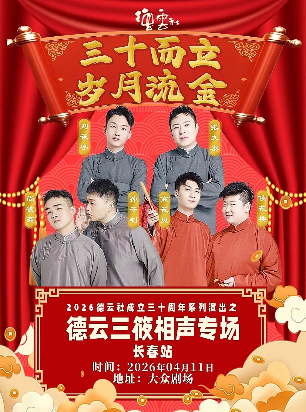 ?演出簡介:2026年恰逢德云社成立三十周年,系列巡演以“三十而立,歲月流金”為核心,致敬傳統(tǒng)、見證成長。本次長春站演出,將為大家?guī)碓兜牡略朴哪c高質(zhì)量對口包袱。