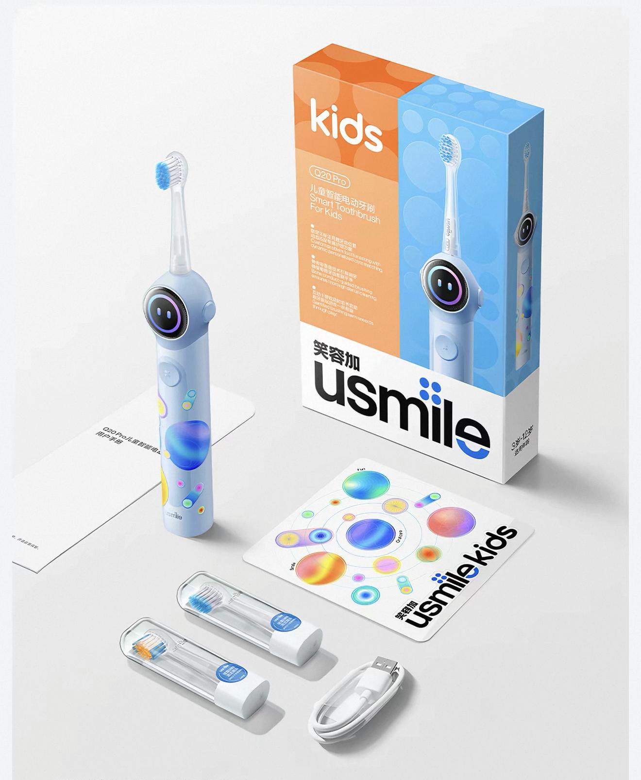 骨傳導(dǎo)技術(shù)之外,usmile兒童電動(dòng)牙刷還采用了靈動(dòng)燈環(huán)設(shè)計(jì),顯示刷牙進(jìn)度、漏刷反饋、跑馬燈環(huán)鼓勵(lì)等信息。usmile Q20系列中的Pro款,則加入了互動(dòng)屏幕、監(jiān)控?cái)z像頭設(shè)計(jì),以及AI個(gè)性化護(hù)牙系統(tǒng)。usmile推出的Q30系列,甚至在配對(duì)手機(jī)App上引入了AR刷牙游戲。
