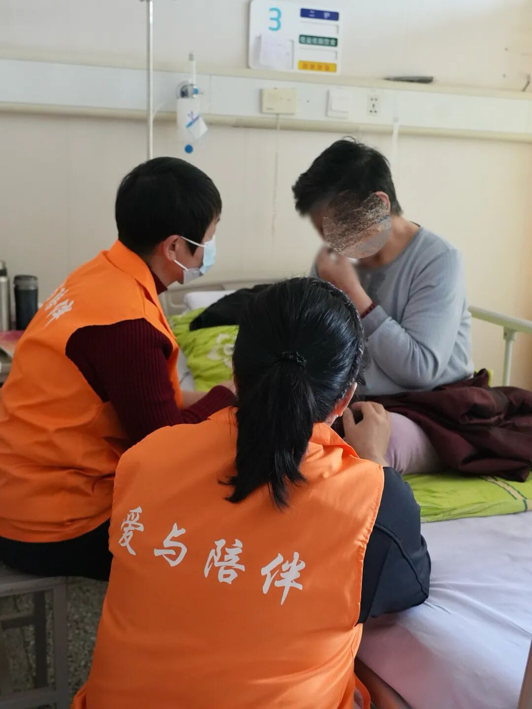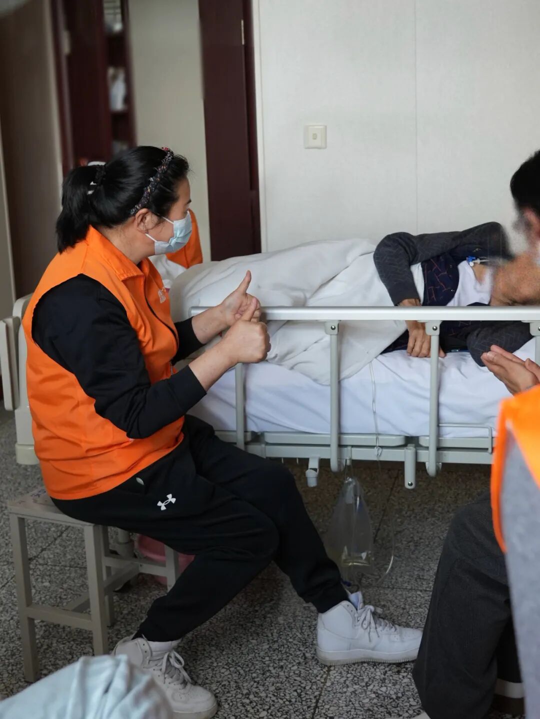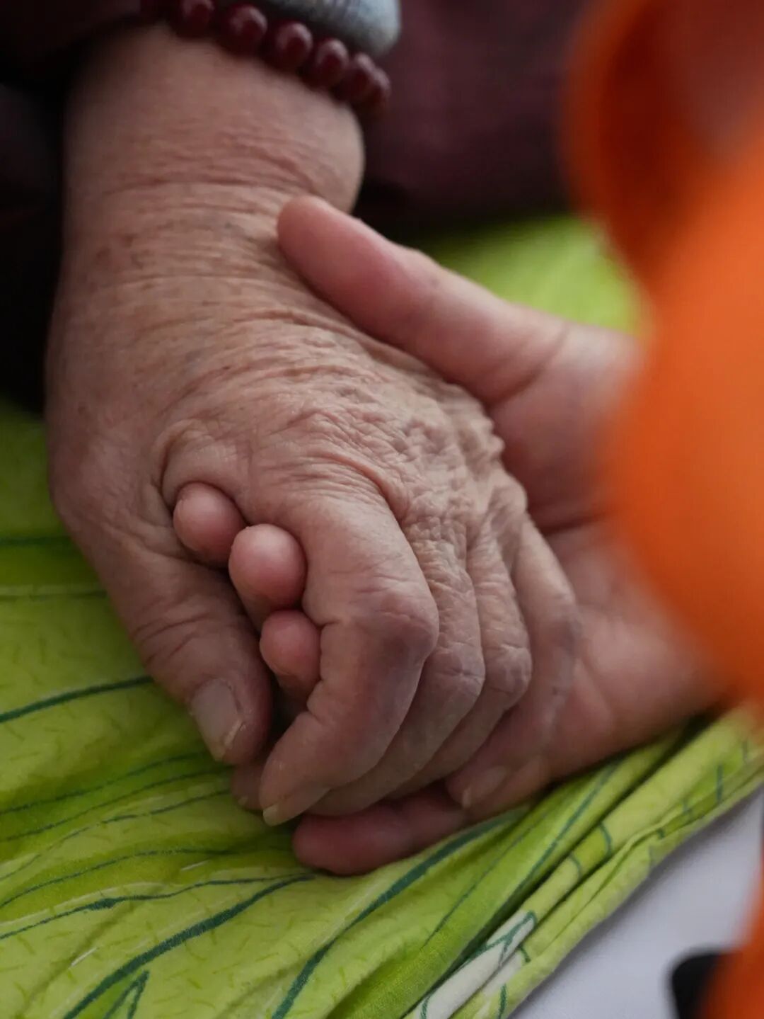 志愿者一直握著奶奶的手