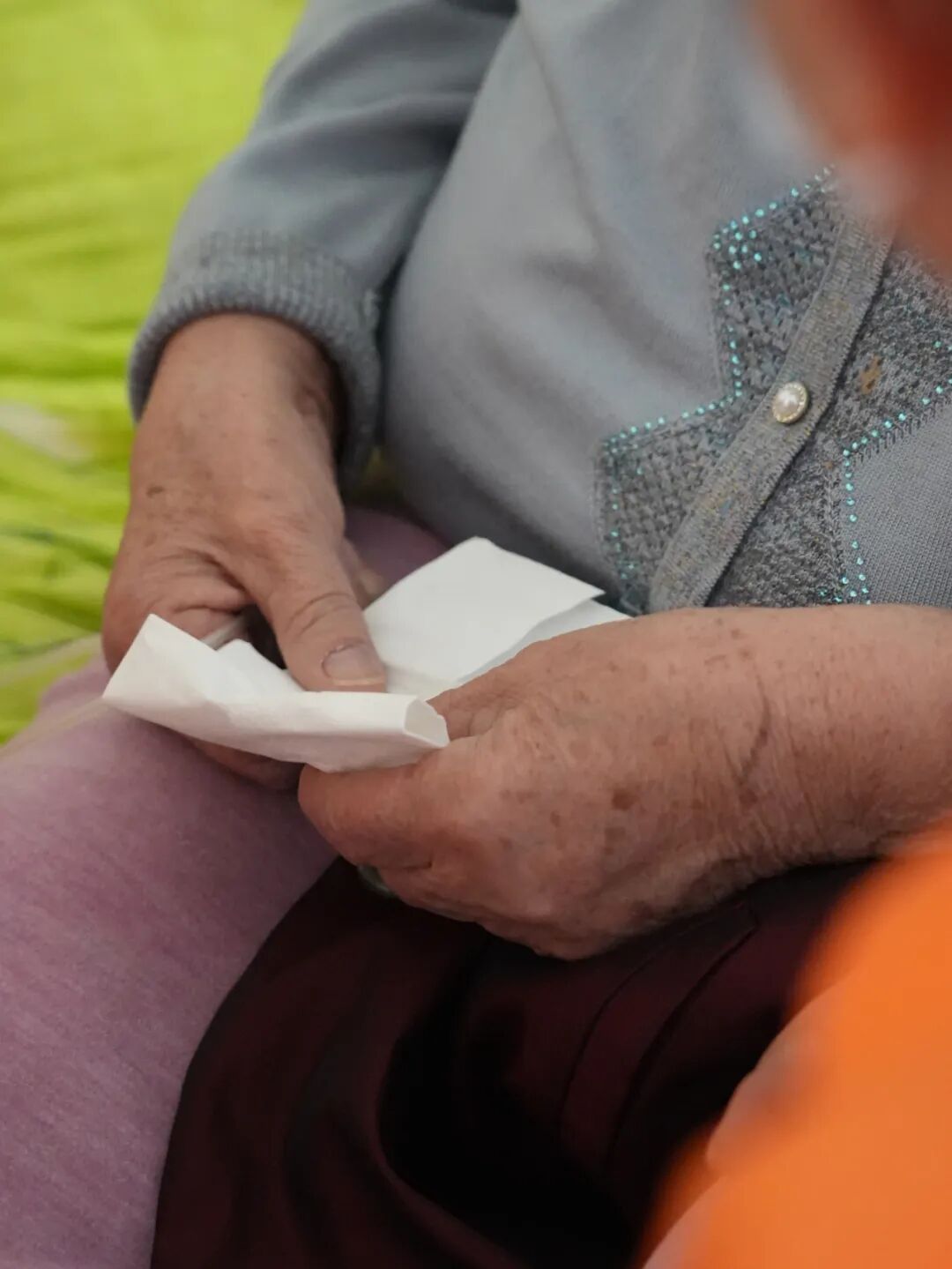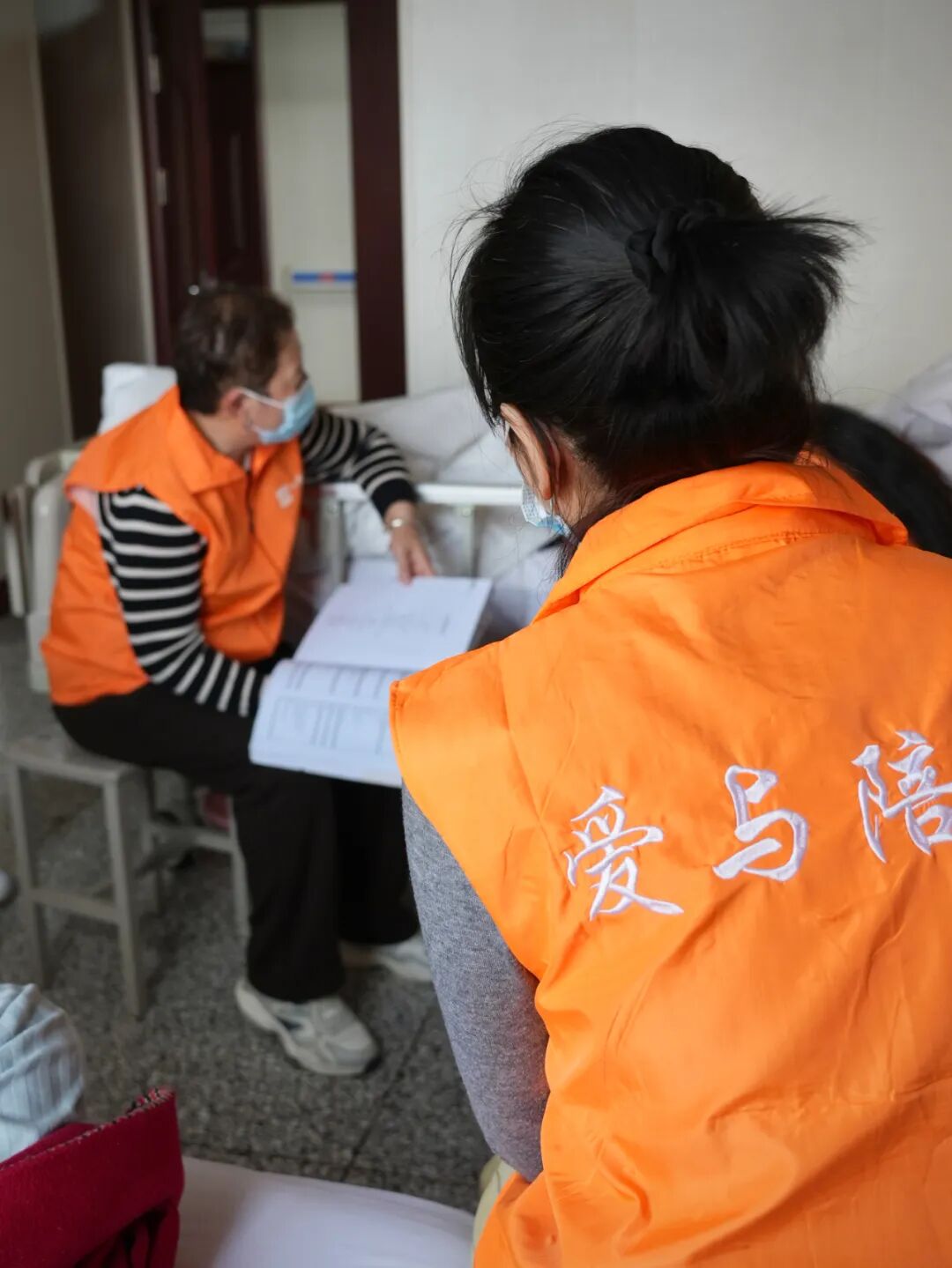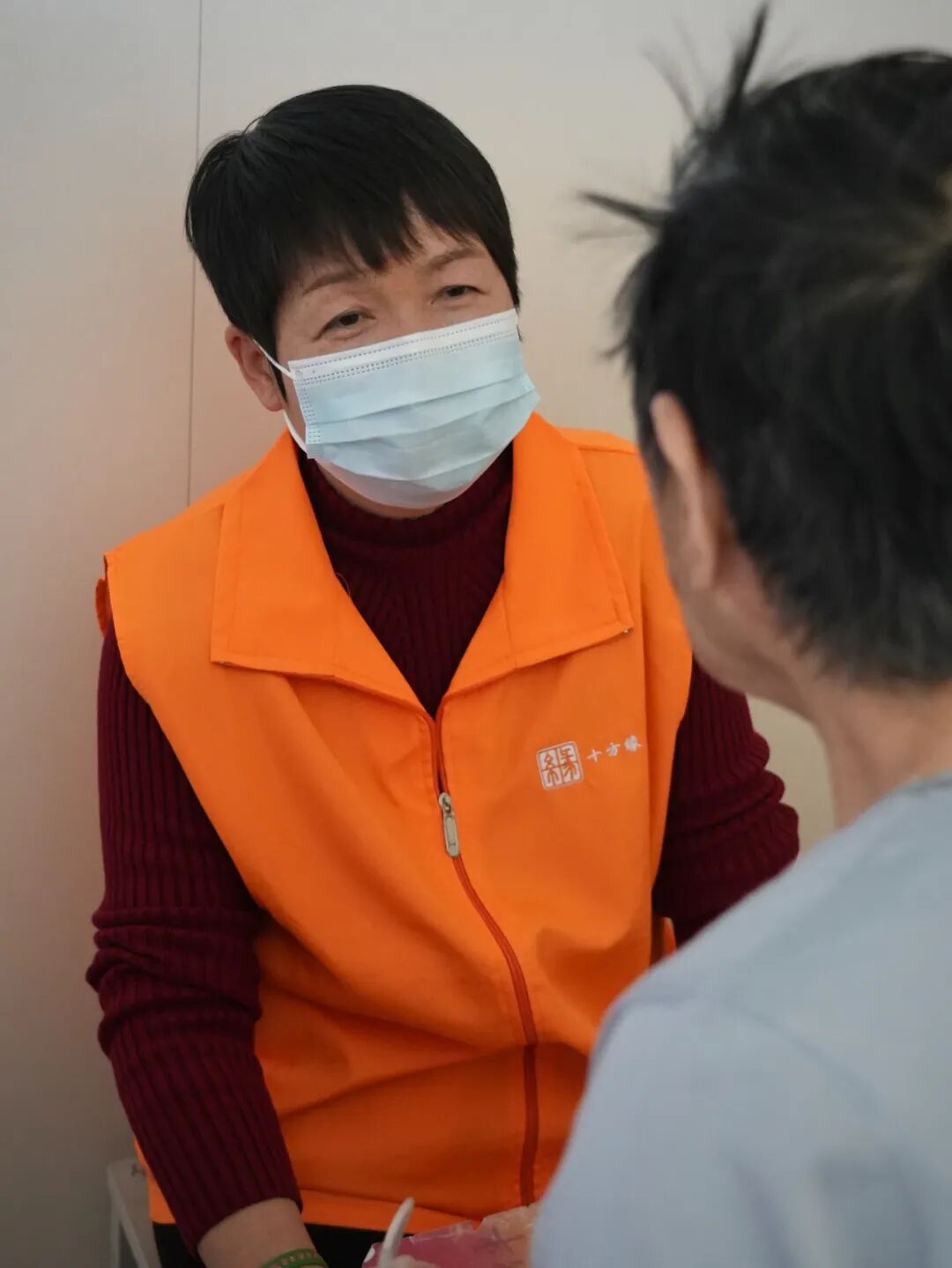 志愿者一直握著奶奶的手