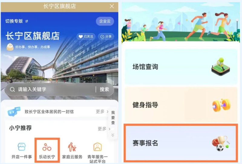 掃描上方二維碼進入“隨申辦長寧區(qū)旗艦店”小程序,點擊“樂動長寧”——“賽事報名”進入報名頁面