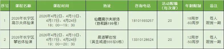 原標題:《長寧區(qū)旗艦店 | 春日福音!高爾夫、攀巖體驗課免費課程報名開啟》