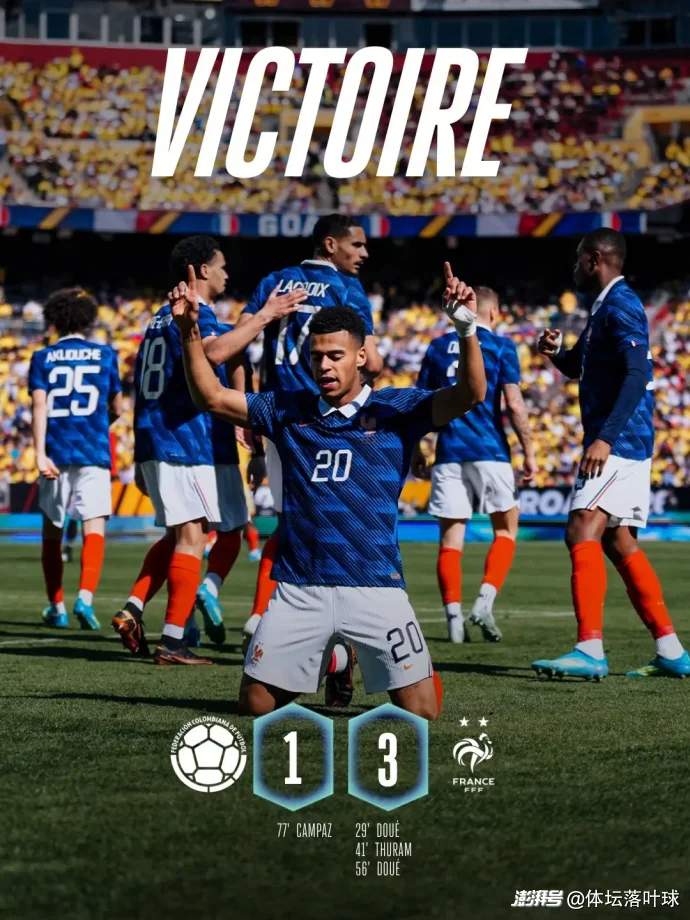 3月30日,中立場(chǎng)地美國(guó)蘭多弗的西北體育場(chǎng),一場(chǎng)國(guó)際足球友誼賽落下帷幕。法國(guó)隊(duì)以一套大面積輪換陣容出戰(zhàn),最終3-1輕取全主力登場(chǎng)的哥倫比亞,用一場(chǎng)毫無(wú)懸念的勝利,再次印證了自身的足壇統(tǒng)治力——獨(dú)一檔的陣容厚度,正是這支球隊(duì)長(zhǎng)盛不衰、劍指衛(wèi)冕的核心密碼。當(dāng)姆巴佩、登貝萊等頂級(jí)巨星安坐替補(bǔ)席談笑風(fēng)生,杜埃雙響、圖拉姆傳射建功的青春風(fēng)暴,不僅擊碎了“替補(bǔ)即軟肋”的固有偏見(jiàn),更讓全世界看到了法國(guó)足球人才儲(chǔ)備的恐怖之處。