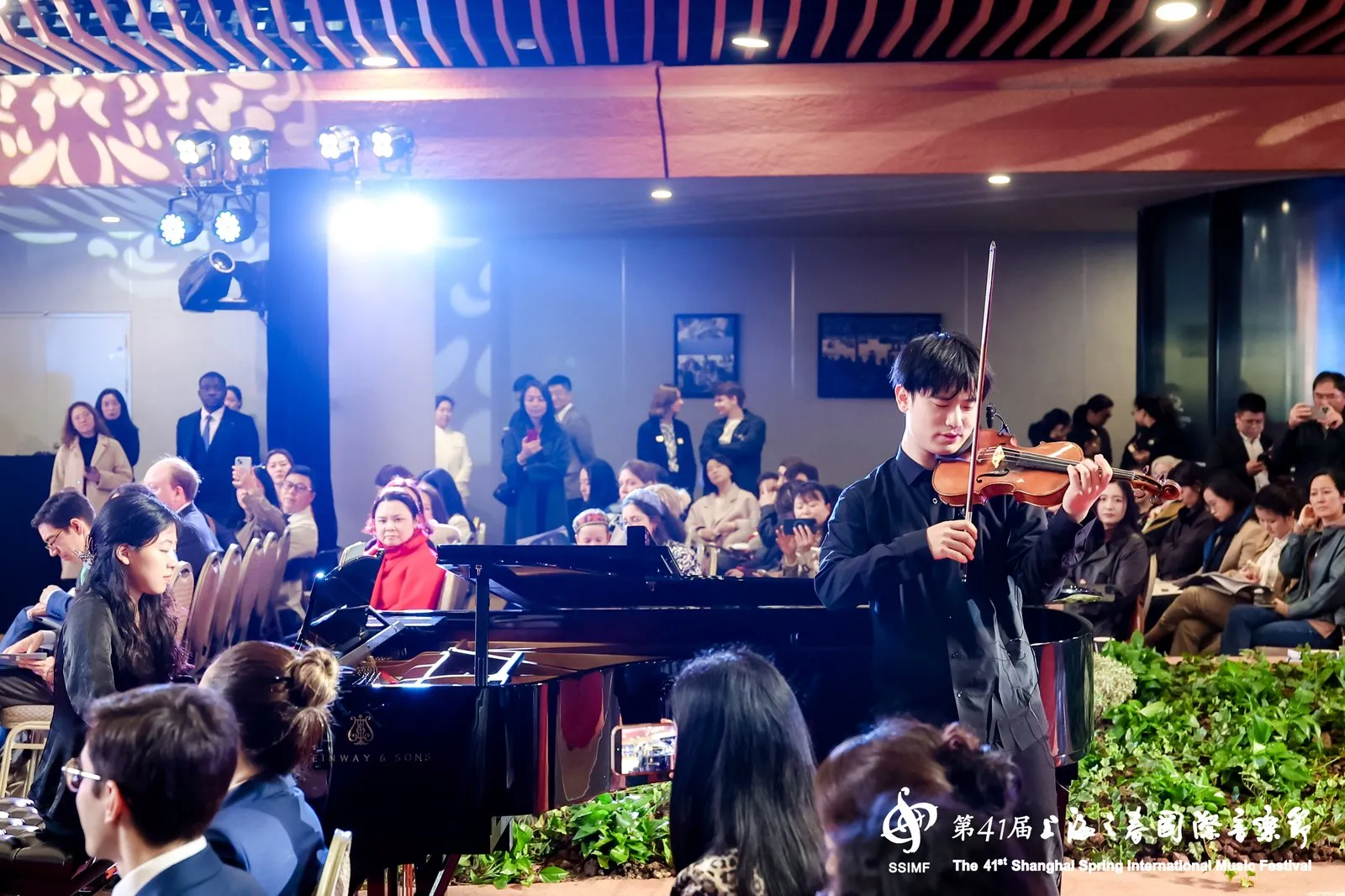 活動后,由上海音樂家協(xié)會與上海音樂學(xué)院打造的音樂會精彩紛呈。青年演奏家朱婧、劉世佳、朱珂宣、王哲慧、李佩雯帶來絲弦五重奏;金于誠、張新禾獻(xiàn)上小提琴與鋼琴二重奏;巴西鋼琴家克里斯蒂安·布杜(Christian Budu)傾情演繹鋼琴獨(dú)奏;青年歌唱家顧文夢、馮浩然帶來中西曲目交融的美聲獨(dú)唱;新西蘭國際手風(fēng)琴名家格雷森·梅斯菲爾德(Grayson Masefield)與俄羅斯演奏家康斯坦丁·里亞賓(Konstantin Ryabin)聯(lián)袂合奏,曲目輪番上演,現(xiàn)場高潮迭起。著名鋼琴家孔祥東壓軸登場,傾情演繹經(jīng)典作品《繁花》。
