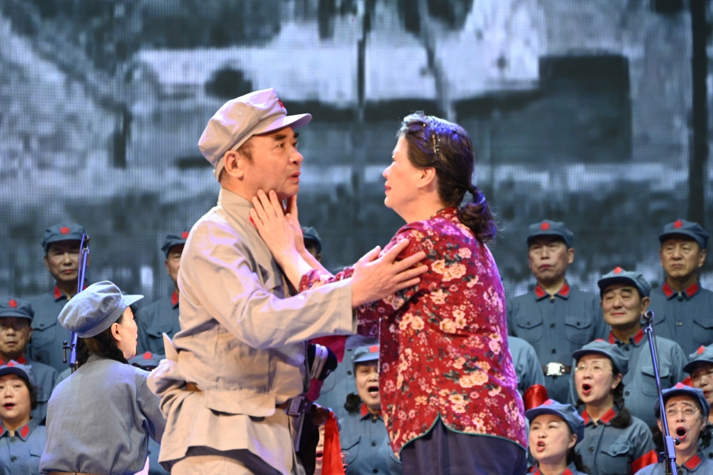 音樂會還特邀了上海男高音歌唱家、原上海輕音樂團獨唱演員、被譽為“浦江之子”的魯耀東,上海歌劇院男中音演員,意大利帕多瓦音樂學院聲樂碩士郭添乙等領唱。上海傳藝藝術團團員也多有專業(yè)藝術團體經歷。他們在《永遠的長征》中的情景表演打動人心?!陡鎰e》篇章里,夫妻執(zhí)手相送,紅軍女戰(zhàn)士揮淚托孤、祖父母忍痛送孫參軍的場景,以細膩演技勾勒出軍民同心的家國情懷。專業(yè)演員和業(yè)余優(yōu)秀團隊攜手奉獻了一場經典合唱音樂會。