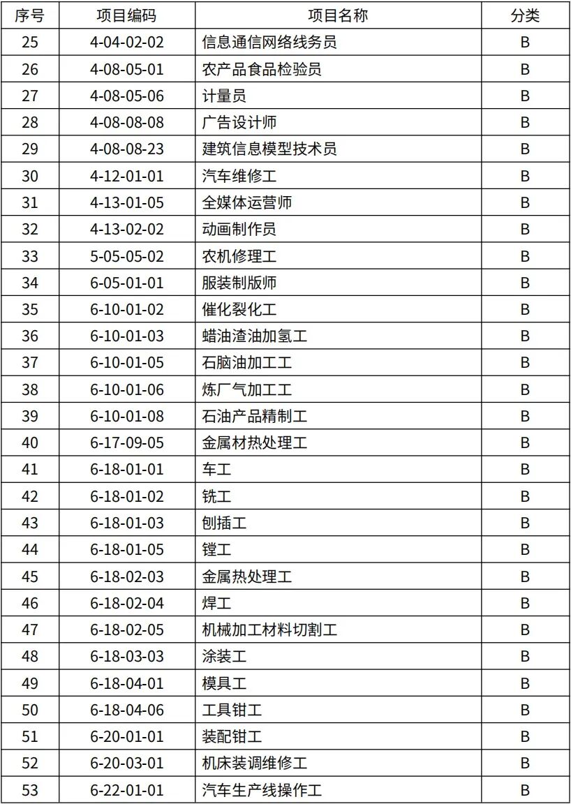 急需緊缺項目(B類)補(bǔ)貼標(biāo)準(zhǔn)分別為初級工(五級)1500元/人,中級工(四級)2000元/人,高級工(三級)2700元/人,技師(二級)3200元/人,高級技師(一級)3700元/人,不區(qū)分等級的職業(yè)資格和專項職業(yè)能力證書補(bǔ)貼標(biāo)準(zhǔn)為800元/人。