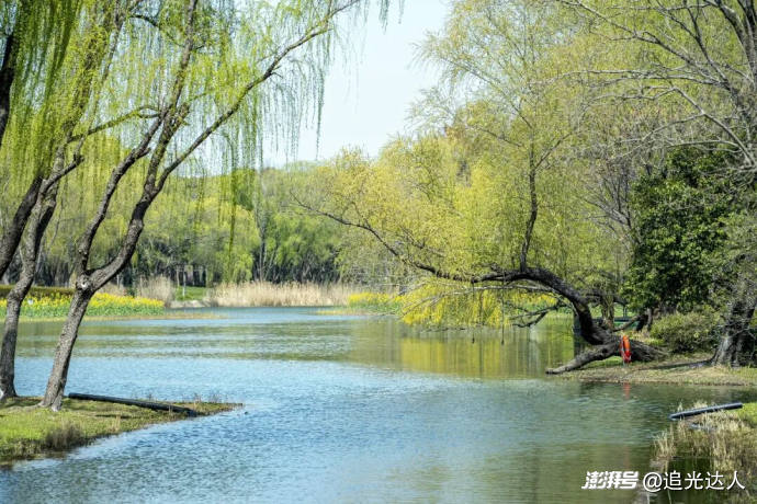 濕地的湖邊種滿了柳樹,秋天時(shí)它們只是些灰撲撲的枝條,毫不起眼。可現(xiàn)在,每一根柳條上都爆出了嫩芽,那種綠,嫩得能掐出水來,嫩得讓人不敢用力呼吸,生怕把這綠色吹散了。柳枝垂在水面上,風(fēng)一過,便輕輕地點(diǎn)著水,蕩開一圈圈的漣漪。我站在一棵老柳樹下,仰頭看那些新綠的枝條在藍(lán)天里搖曳,“不知細(xì)葉誰裁出,二月春風(fēng)似剪刀?!本拖襁@句詩詞描繪的一樣,春天的手太巧了。