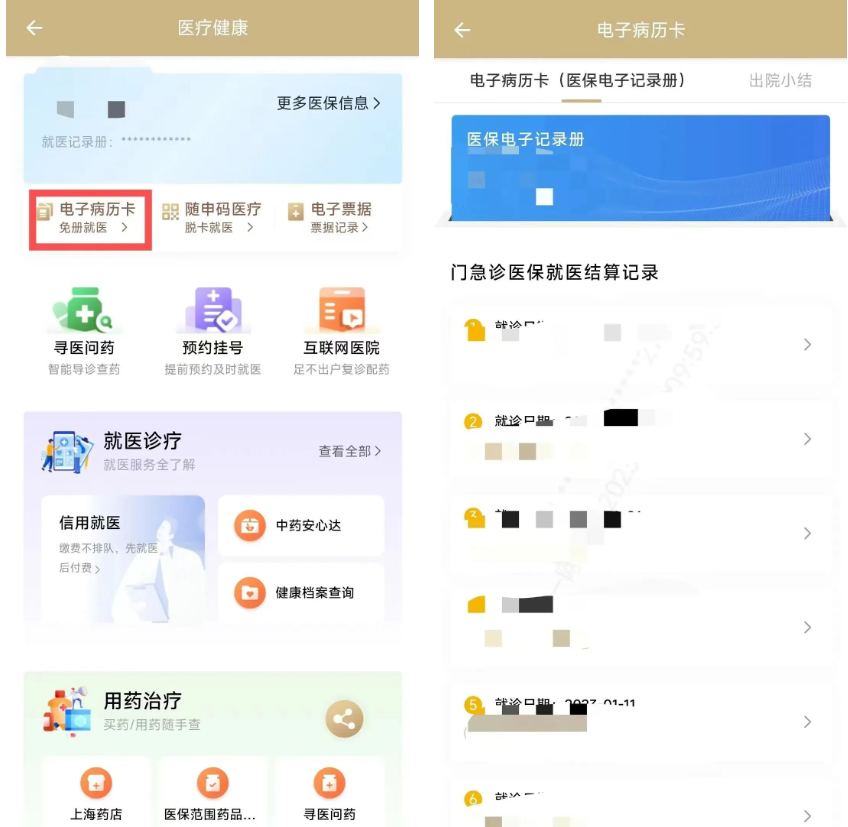 電子病歷卡:點(diǎn)擊進(jìn)入【電子病歷卡】服務(wù),即可查看你的醫(yī)保電子記錄冊(cè),查看往期門(mén)急診醫(yī)保就醫(yī)結(jié)算記錄。