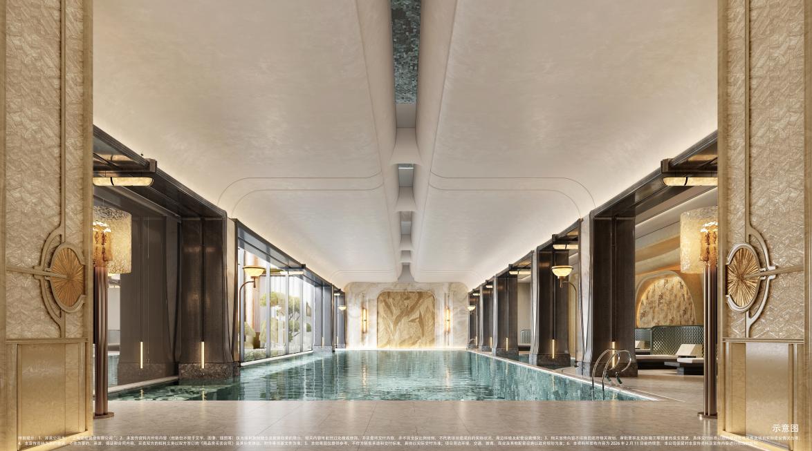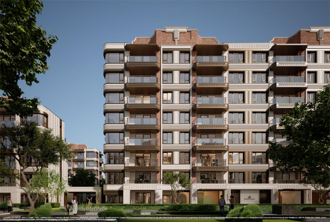 這種轉(zhuǎn)化,體現(xiàn)在首發(fā)地塊。1.7的低容積率,意味著更少的住戶、更多的公共空間,約1700平方米的下沉式會所,由主導了上海前灘華爾道夫酒店、深圳灣一號的CCD操刀設(shè)計,泳池、健身房、瑜伽室等功能空間,用紅洞石、貝金米黃等珍貴石材,演繹海派生活的精致與從容。建筑立面上,設(shè)計團隊溯源海派文化根源,汲取思南公館拱形語言,以現(xiàn)代材料進行演繹,白色石材搭配仿銅鋁板和薄陶磚,既有海派建筑記憶的回溯,又不失現(xiàn)代時尚元素。景觀設(shè)計則由設(shè)計了上海濱江壹號院、中興路一號的朗道公司操刀,以“摩登鎏金海派莊園”為核心主題,將西方文藝優(yōu)雅、東方儒雅閑適與上海獨有的風度氣質(zhì)融為一體。