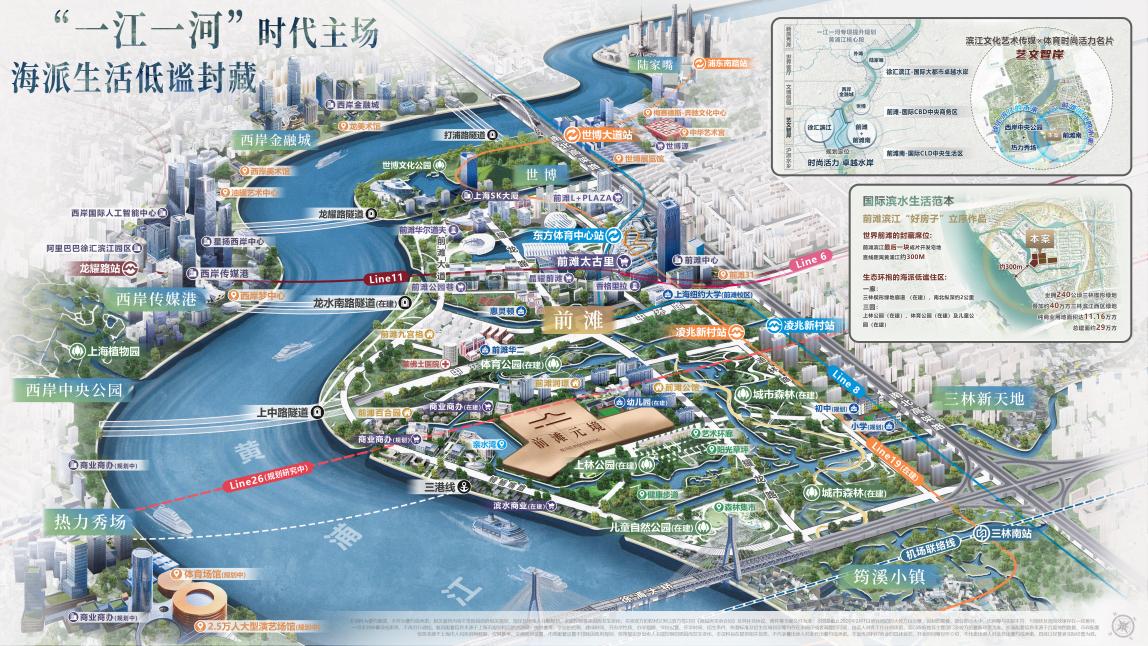 作為大前灘版圖上最后開發(fā)的成片區(qū)域,前灘濱江板塊生態(tài)稟賦。規(guī)劃總面積約446.2公頃,其中公園綠地約240公頃,相當于2-3個世紀公園,西區(qū)綠化覆蓋率高達62%。更重要的是,這里是黃浦江核心段罕見的“引水入灣”區(qū)域,濱江活力帶與內(nèi)灣休閑帶交織,真正實現(xiàn)“推窗見綠、出門入園”。當城市核心區(qū)的土地日益稀缺,這樣一塊兼具“濱江+低密+生態(tài)”的留白之地,其稀缺性不言而喻。
