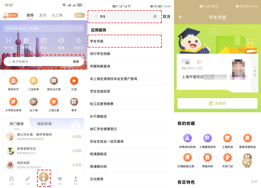 凡本市在籍學(xué)生或?qū)W生家長,皆可通過登錄“隨申辦市民云”APP→首頁搜索關(guān)鍵字“學(xué)生”→點擊“學(xué)生專版”體驗服務(wù)!