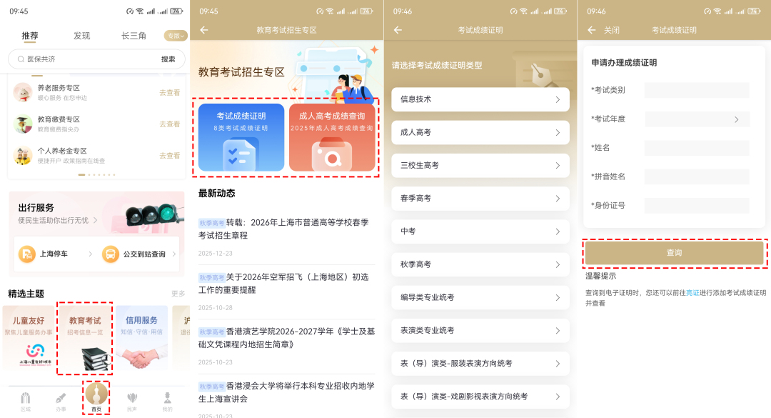 在專區(qū)內(nèi),家長能夠掌握最新的考試招生動態(tài)、查詢考試成績、在線申請開具考試成績證明等。
