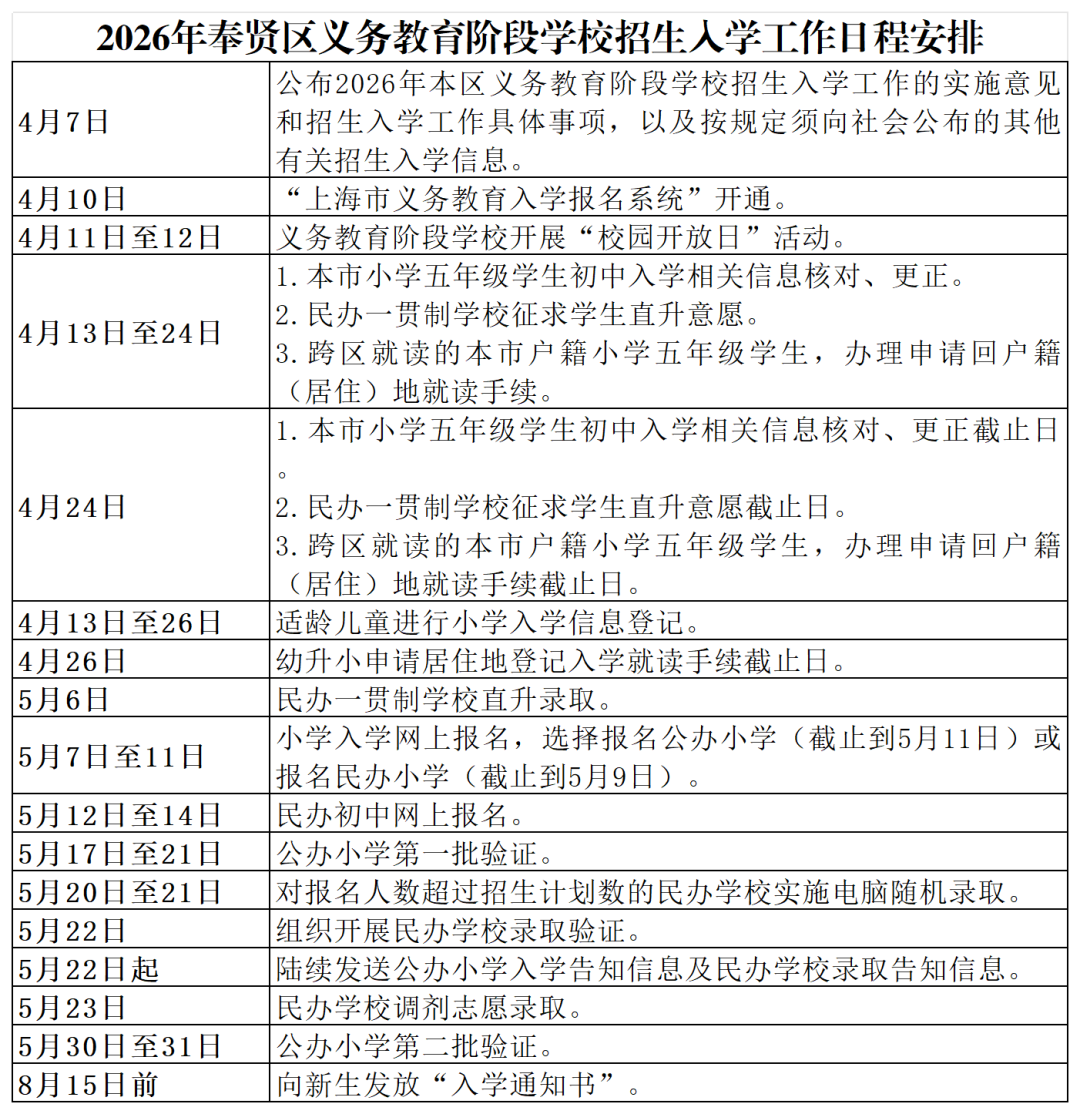 奉賢區(qū) | 2026年奉賢區(qū)義務(wù)教育階段學(xué)校招生入學(xué)工作的實施意見及問答