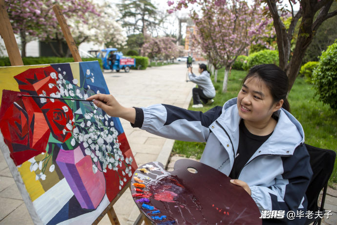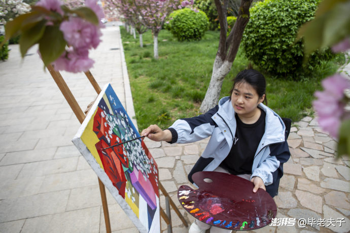 陽(yáng)光透過花枝縫隙灑落,斑駁光影落在畫板之上,張路彤正專注地伏案創(chuàng)作。身為即將畢業(yè)的學(xué)子,她滿心都是對(duì)校園的不舍與眷戀,將這份青春情愫盡數(shù)融入畫筆,細(xì)細(xì)勾勒櫻花的柔美姿態(tài),認(rèn)真涂抹春日的鮮活色彩。