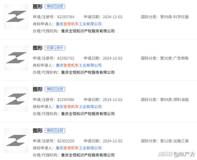 更重要的是張雪機(jī)車早已對(duì)這一Logo進(jìn)行了商標(biāo)布局。