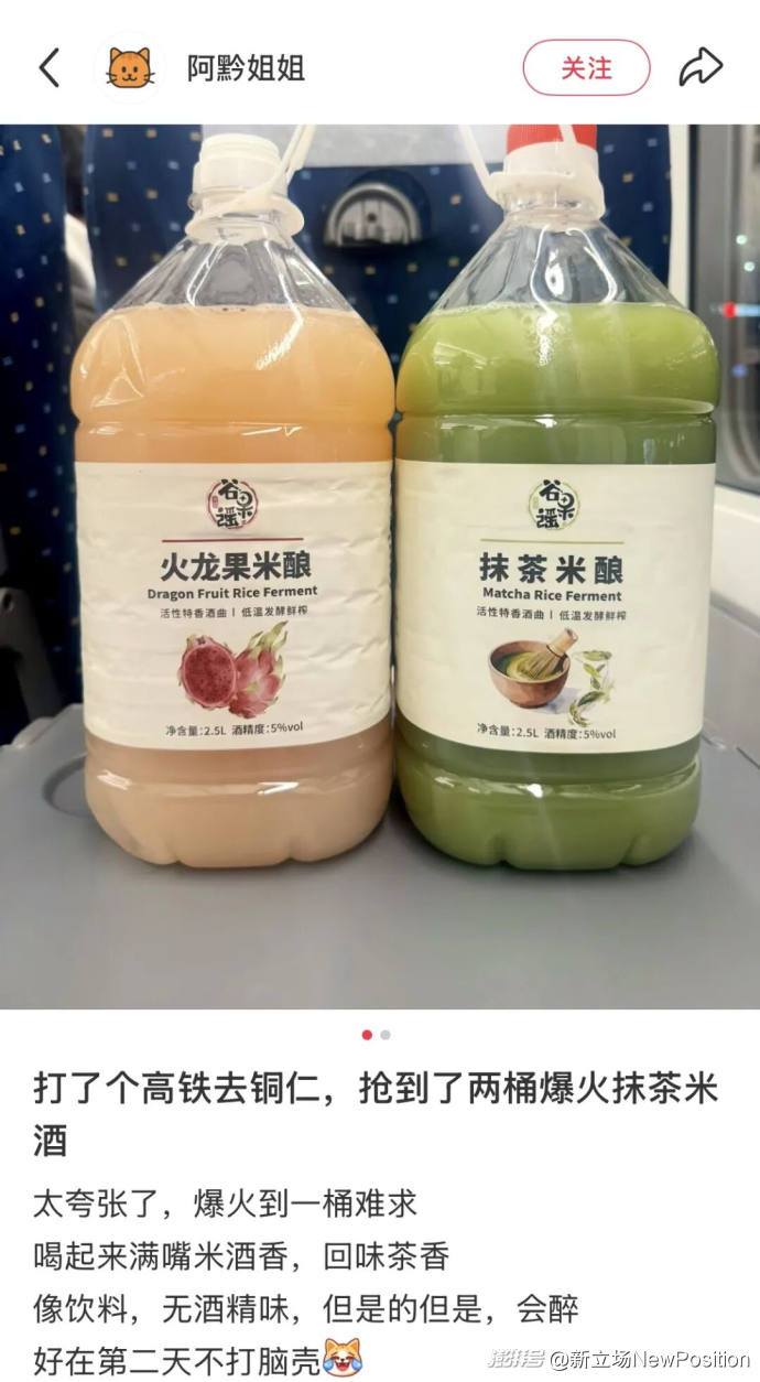 展臺之外,一款來自貴州的抹茶米酒正在社交平臺上悄然出圈,據(jù)報道日產(chǎn)量6萬斤仍供不應(yīng)求,主力購買者集中在25歲上下的女性用戶。這款產(chǎn)品沒有百年窖池,沒有精美的包裝,卻在一個傳統(tǒng)巨頭集體押注的賽道上,輕巧地找到了自己的位置。