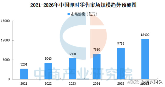 研判盒馬的處境必須將視線放到國內(nèi)整個(gè)即時(shí)零售戰(zhàn)場(chǎng)上來。據(jù)調(diào)研機(jī)構(gòu)中商產(chǎn)業(yè)研究院數(shù)據(jù),國內(nèi)即時(shí)零售市場(chǎng)規(guī)模2024年達(dá)7810億元,同比增長20.15%;2025年為9714億元,同比增長24.38%;預(yù)計(jì)2026年將同比增長23.53%至1.2萬億元,2021-2026年的5年復(fù)合年均增長率(CAGR)為30.70%。
