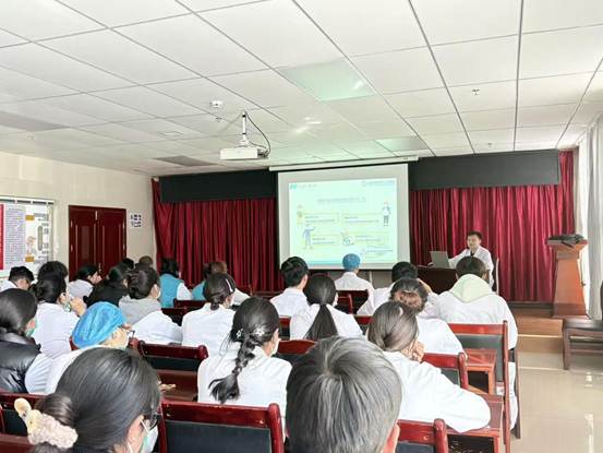 梁坤在山南市人民醫(yī)院為醫(yī)務(wù)人員開展專題講座,傳授診療技術(shù)。(受訪者供圖)