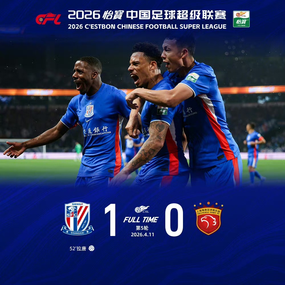 拉唐下半場頭球頂進制勝球,申花以1比0小勝海港,前五輪聯(lián)賽3勝2平拿到11分,將積分從賽季初的負10分變?yōu)槿缃竦恼?分。