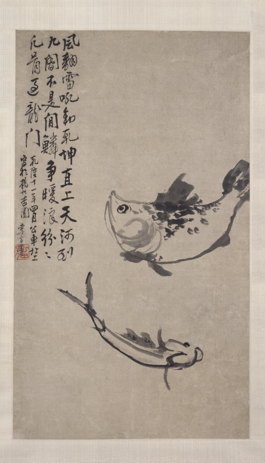 李方膺雙魚圖軸,清。來源/故宮博物院