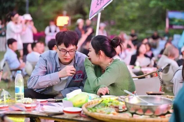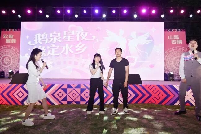 最是現(xiàn)場(chǎng)表白扣人心。活動(dòng)最后,緣分揭曉與勇敢表白互動(dòng)環(huán)節(jié)成為全場(chǎng)最動(dòng)人的焦點(diǎn)。大膽告白的青年主動(dòng)登臺(tái),真誠(chéng)表達(dá)對(duì)心儀對(duì)象的欣賞與好感。在公益紅娘的助力下,現(xiàn)場(chǎng)共有13對(duì)青年男女成功牽手,并為對(duì)方佩戴定情繡球;自由聯(lián)誼環(huán)節(jié),青年們?cè)邬Z泉村的星空下自由結(jié)伴、傾心交談,互換聯(lián)系方式,處處洋溢著甜蜜與溫馨。