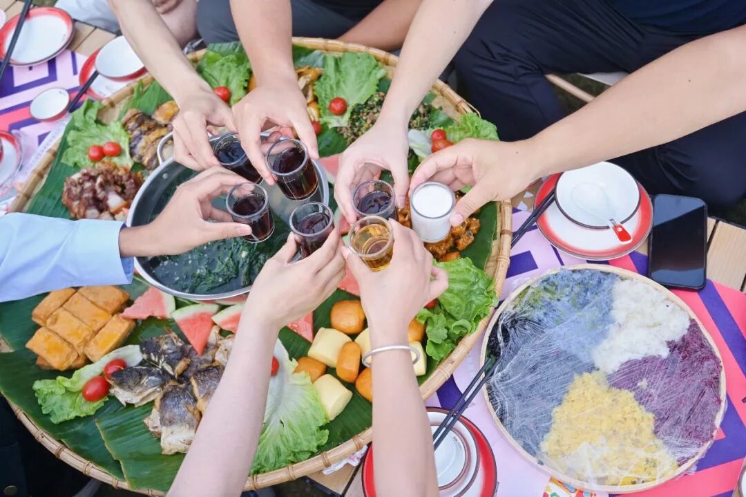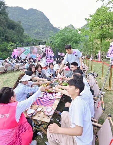 春風(fēng)沉醉的夜晚,“村晚”音樂(lè)會(huì)暨長(zhǎng)桌簸箕宴溫馨開(kāi)啟。嘉賓們圍坐一堂,共享以自制五色糯米飯為核心的廣西特色美食,在輕柔的音樂(lè)中暢談交流。樂(lè)隊(duì)登臺(tái)演繹青春浪漫經(jīng)典曲目,點(diǎn)燃現(xiàn)場(chǎng)氛圍。