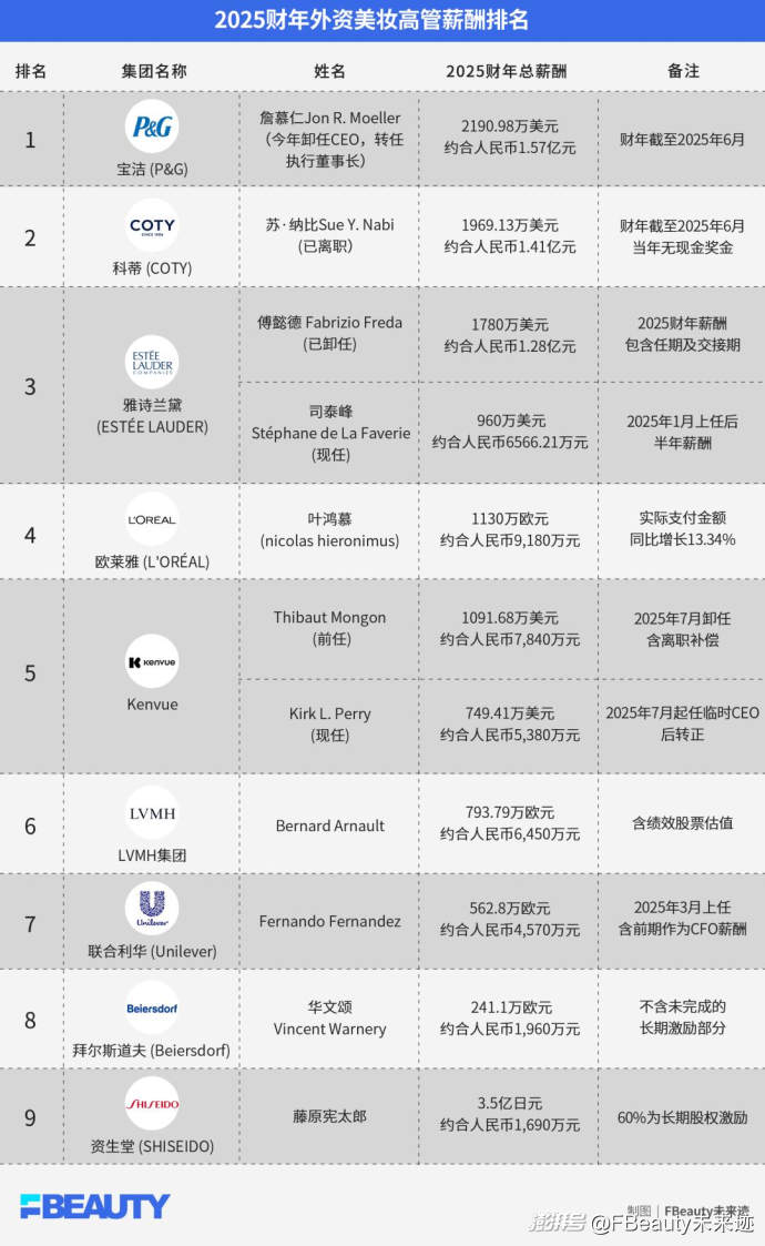 《FBeauty未來跡》梳理了9家美妝大公司CEO的最新薪酬賬單,試圖穿透數(shù)字表層,讀懂巨頭們?yōu)檎贫嬲叨▋r的邏輯與信號。