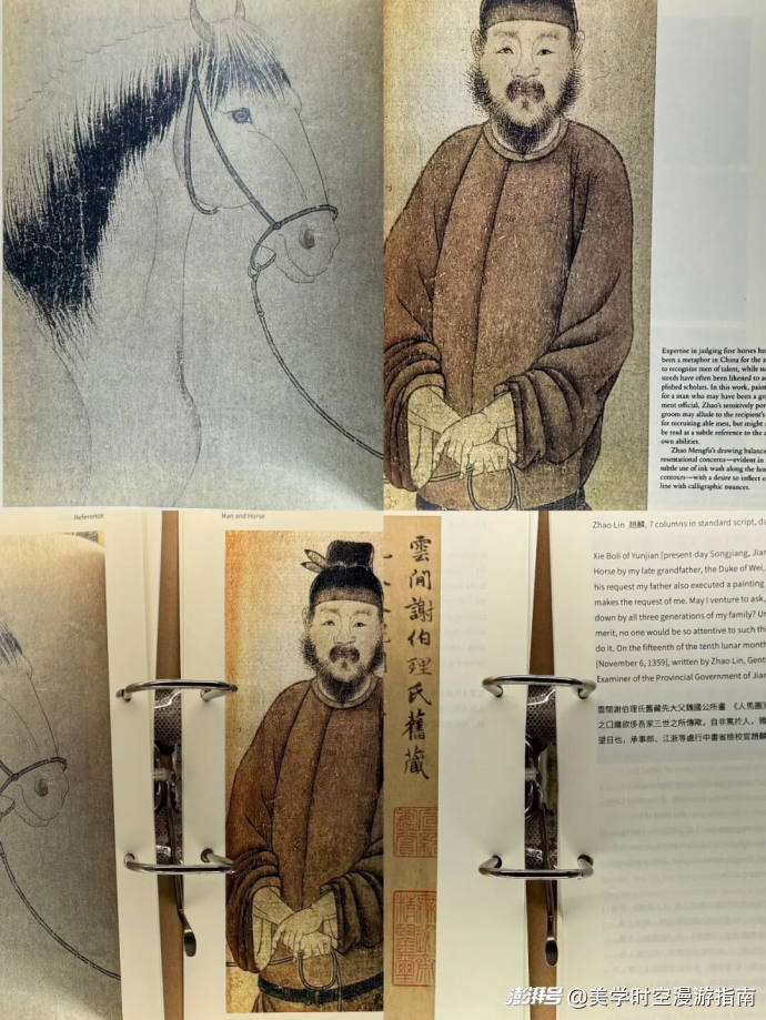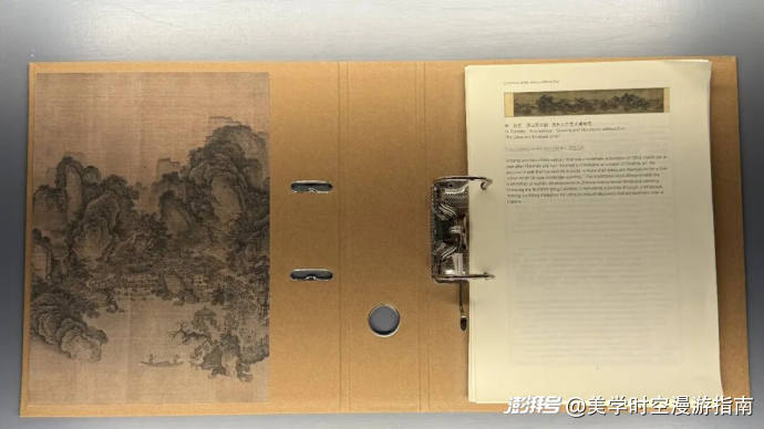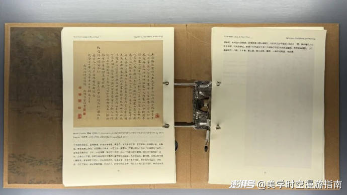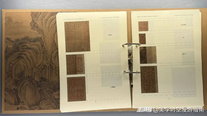 如果想概括地了解一幅古畫,拿到這份圖冊(cè),就挺全面的了。展覽中腰柜的設(shè)計(jì)是一個(gè)圖冊(cè)(展示柜)+一個(gè)說明冊(cè)。說明冊(cè)可以從頭至尾充分翻閱。