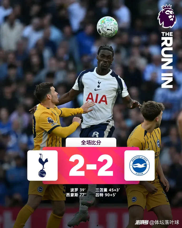比賽進(jìn)程堪稱熱刺賽季困境的濃縮標(biāo)本。 新援哈維·西蒙斯在39分鐘以一記精妙挑傳助攻波羅頭槌破門,77分鐘又內(nèi)切轟出無解世界波再度領(lǐng)先,脫衣慶祝的狂喜仿佛勝利已裝入囊中。然而,補(bǔ)時(shí)第95分鐘魯特爾的凌空抽射將比分定格為2-2——領(lǐng)先近二十分鐘、主場作戰(zhàn)、對(duì)手無欲無求,三分變一分,熱刺又一次在狂歡中親手掐滅希望。這并非孤例:從里沙利松進(jìn)球后遭曼聯(lián)絕平,到西蒙斯名場面重演,“慶祝即被反噬”已成熱刺無法掙脫的心理魔咒。