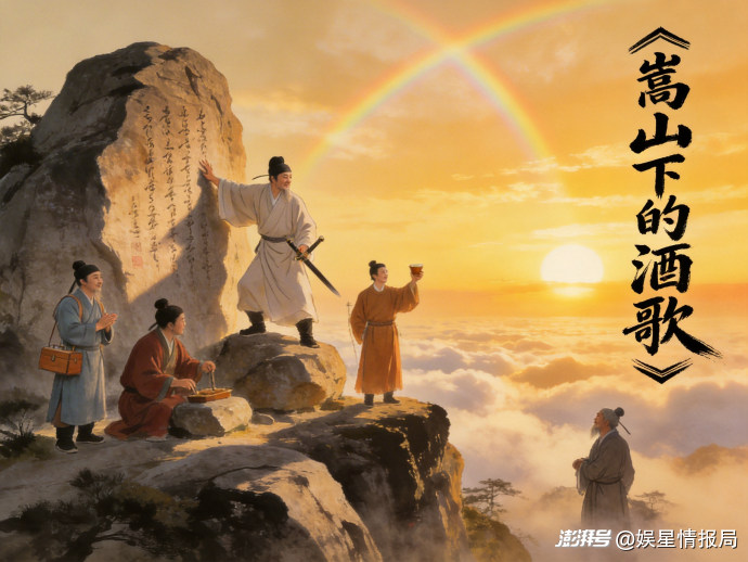 躲避追殺途中,他們循著密信和石刻符號,找到嵩山一處隱秘山洞。洞里有“天生我材必有用”的石刻,讓李白豁然開朗。最終四人登上嵩山之巔,云海翻騰,李白以劍代筆,刻下《將進酒》。