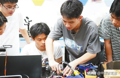 學(xué)生在浙江大學(xué)機(jī)器人與智能裝備學(xué)生創(chuàng)新實(shí)踐基地開展活動(dòng)。學(xué)校供圖