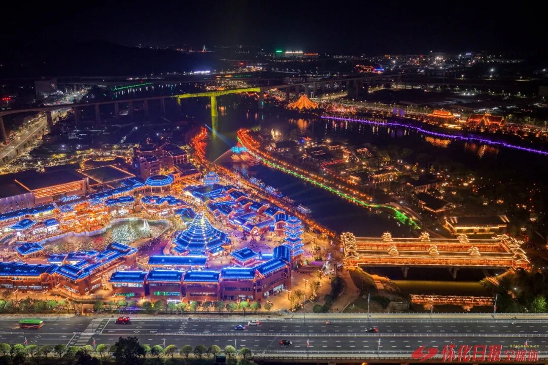 燈火通明、光影流轉(zhuǎn)的榆樹灣,彰顯文旅市場的勃勃生機(jī)。(懷化日報(bào)全媒體記者 潘雨 攝)